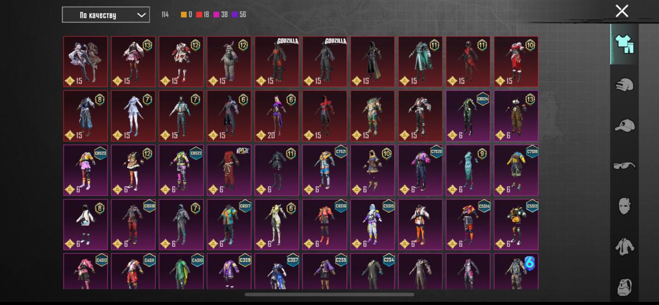 👚Топ костюмы: 65; ⭐️Royale Pass: с 5 сезонна; 🌈Скины на оружие: 36;