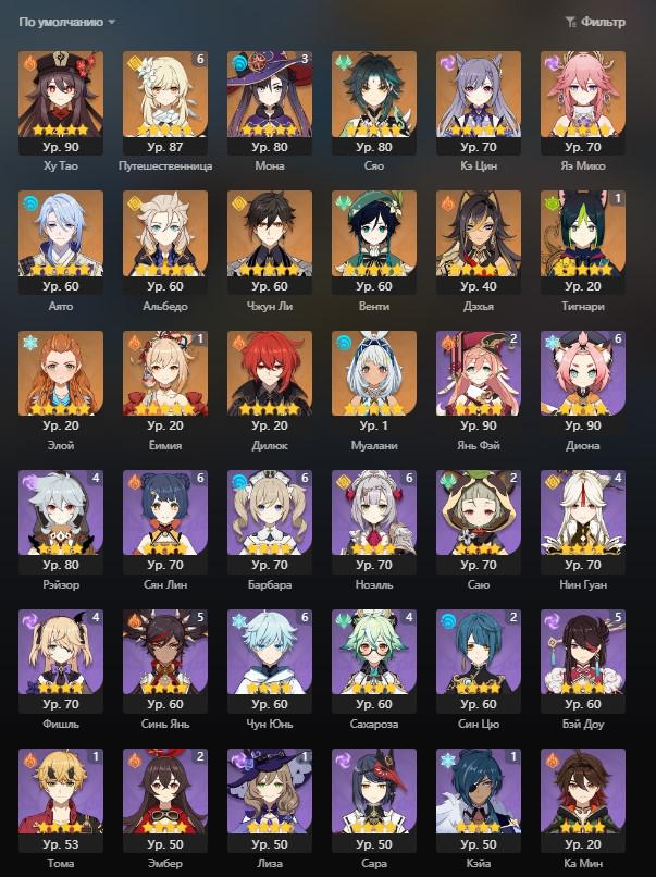 📈 Ранг: 46 🧍♀️ Персонажи: Тарталья, Мона, Кли, Дилюк и другие ✨ Примогемы: 680